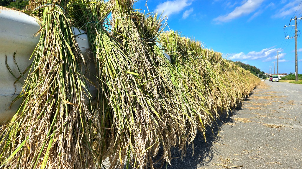 沖縄ではガードレールで稲架かけするんだよ????✌️